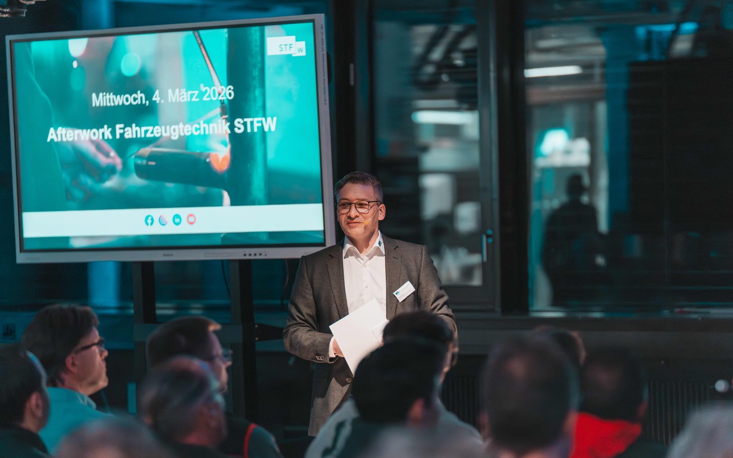 Am Mittwoch, 4. März 2026, lud die STFW zum Afterwork-Event der Fahrzeugtechnik ein und rund 100 Teilnehmende folgten der Einladung. Schon beim Eintreffen war spürbar: Hier steckt Leidenschaft fürs Handwerk und Neugier auf die Zukunft. Nach der Begrüssung durch René Kohler, Leiter Bildung Fahrzeugtechnik, starteten die Gäste in drei Gruppen zu einem geführten Rundgang durch die Werkstätten mit Live-Demos.